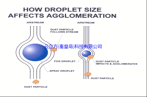DRYFOG?“干霧抑塵”技術的初創理論是基于加拿大滑鐵盧大學與美國科羅拉多礦業學院共同于《Coal Age Magazine》(煤炭時代雜志)發表的題為“解決可吸入塵埃的控制”一文中提到的:水霧顆粒與塵埃顆粒大小相近時吸附、過濾、凝結的機率最大”。